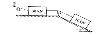 a) Find the least value of P required to cause the system of blocks shown in Figure to have impending motion to the left. The coefficient of friction under each block is 0.20. (Unit 4)